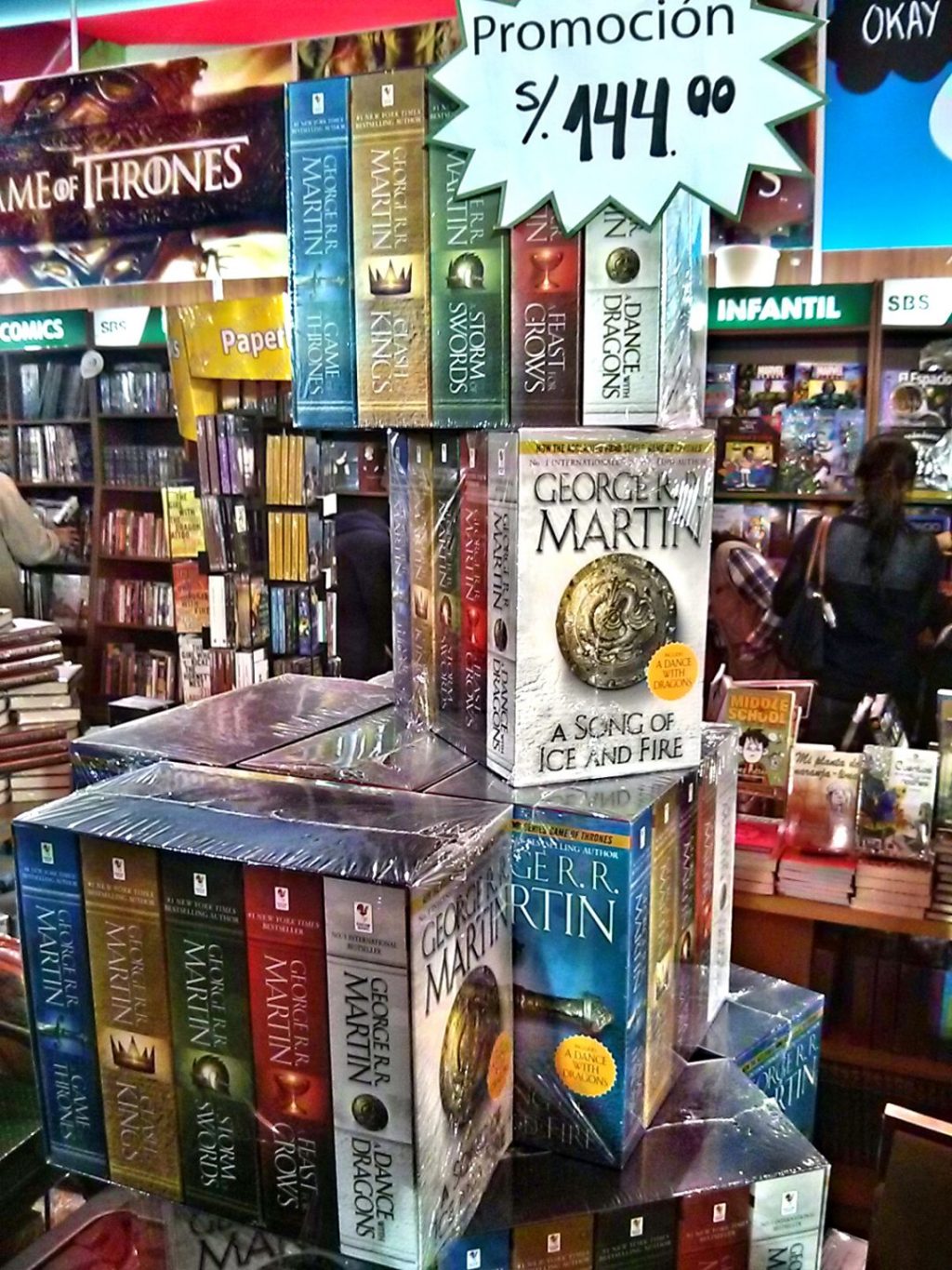 Colección en caja (en inglés), todo a S/.136. - Librería Íbero (es la que importa los libros de GoT en español)